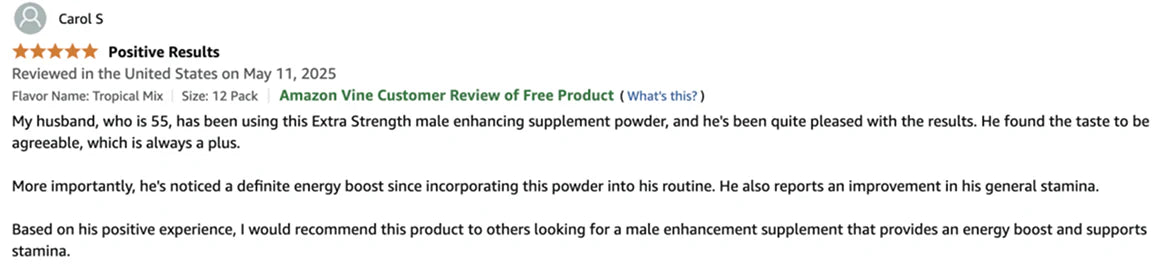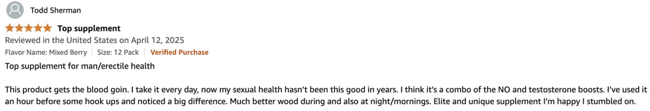 I started taking The Man Tonic as part of my morning routine, and I can honestly say I feel like I'm in my prime again. I have steady energy throughout the day, my mind is sharper, and my overall vitality has improved. This isn't just another supplement-it's a lifestyle upgrade. Whether it's work, the gym, or the bedroom, I feel more capable and confident than ever. Highly recommend to anyone looking to take their performance to the next level!"