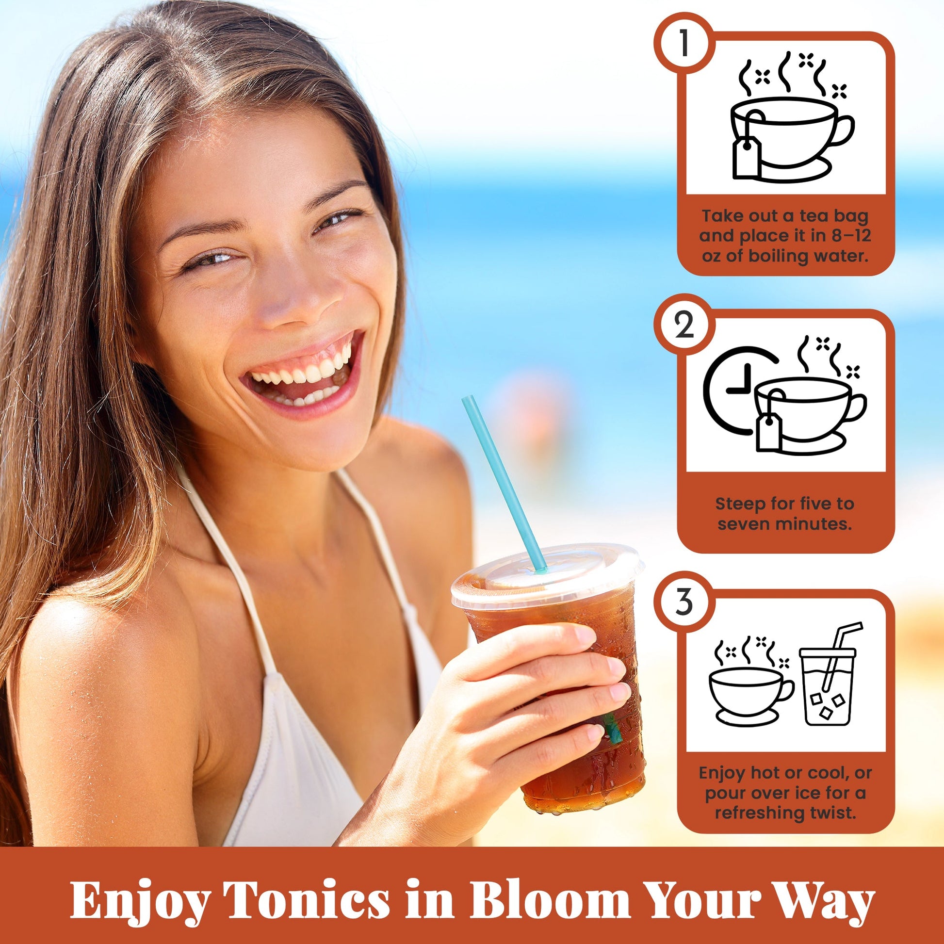 Whether you're chasing a healthier and more glowing complexion, strengthening your hair and nails, or simply building beauty into your daily wellness routine, this tea helps you feel as good as you look—naturally radiant, beautifully supported, and always at the peak of your beauty!